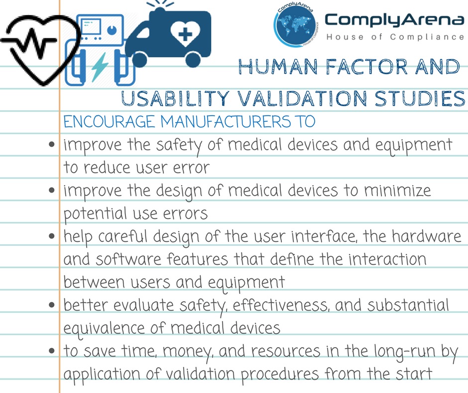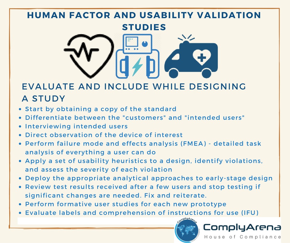 Human factor and usability validation studies may seem complicated, but it could be summarized as below: Ensure you evaluate and include the below while designing a study
